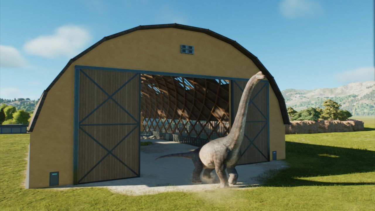 This house takes it's designed from air hangers and giraffe houses to make the perfect house for Brachiosaurus and other sauropods. (To get the Brachiosaurus inside place food down and make a fake feeder or realism look)