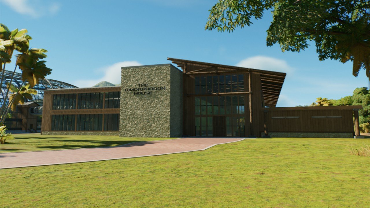 Give your Dimorphodon the house the deserve! This custom built house has everything they need from climbing frames themed as dead trees which still allows your guests to get the perfect view. It also has substrate for dust baths and foraging any loose food items as well as a feed ball for enriching your Dimorphodon. Don't worry your flying friend's don't have to feel cooped up there is a cage tunnel to allow them into a larger aviary of your choice. Not only that this build is well venterlated and heated! (This is a skin for the viewing dome entrance building to attach to the side of your aviary to add some extra flare!)